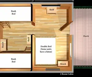 1 Double Bed and 2 Twin Bunk Beds