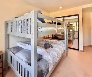 1 King Bed, 1 Queen Bed, 1 Twin Bunk Bed and 1 Twin Futon