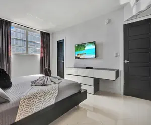 2 guestsWith a stay at this condo in Hollywood (Hollywood Beach), you'll be within a 10-minute drive of Hollywood Beach and Aventura Mall. This beach condo is 9.4 mi (15.1 km) from Hard Rock Stadium and 9.6 mi (15.4 km) from Port Everglades.