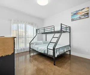 1 King Bed, 2 Queen Beds, 1 Twin Bunk Bed and 2 Twin Beds