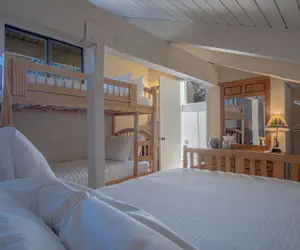 1 Queen Bed, 1 Twin Bunk Bed and 1 Double Bed
