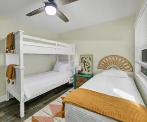 1 King Bed, 1 Twin Bed, 1 Twin Bunk Bed and 1 Twin Futon