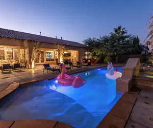 2 guestsWhen you stay at this vacation home in Indio, you'll be next to a golf course, a 4-minute drive from Empire Polo Club and 9 minutes from Indian Wells Tennis Garden. This golf vacation home is 28.6 mi (46 km) from Joshua Tree National Park and 15.5 mi (25 km) from Agua Caliente Casino.
