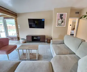 ⭐ Stylish and comfortable living room - wifi & TV equipped with Roku so you can login/stream from your favorite services. The couch serves as an option to sleep 🛏️ an additional 1 guest.
