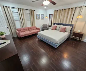 *Master bedroom - Indie room. Sleeps 3. π π π.Equipped with queen bed, sofa sleeper, and 55" Roku TV.