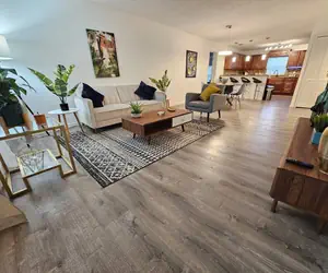⭐ Stylish and comfortable living room - wifi TV equipped with Roku so you can login/stream from your favorite services. The couches serve as an optional space to sleep 🛏️ an additional 2 guest.