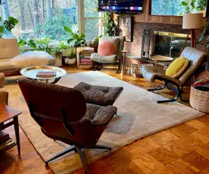 2 bedrooms (1 king bed and 1 queen bed), 2 full baths, 3 working fireplaces, a large living room, and an additional den/office with a wood stove. 2 twin daybeds located in the den for extra guests or a third bedroom.