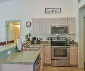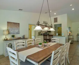 In addition to the comfortable accommodations, this impressive vacation home also offers a private screened-in pool for the whole family to enjoy. The pool can be heated with an electric heat pump upon request for an extra charge.