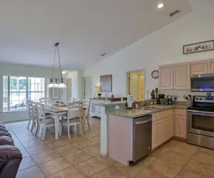 This stunning vacation villa boasts ample space for the whole family to enjoy. Unwind in the living room, complete with a smart TV and free internet access, after a long day in the sun. The adjacent dining room seats up to 8 guests, and the fully equipped kitchen has everything from pots and pans to utensils.