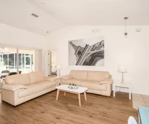 This spacious three-bedroom vacation rental can comfortably accommodate up to six guests. The master bedroom boasts a king-size bed and a full bathroom, while the guest bedrooms offer one queen-size bed and two twin-size beds, along with a shared bathroom.