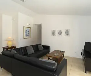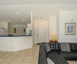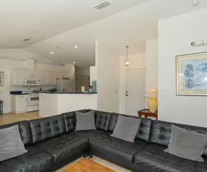 4 bedroom and 2-bathroom Vacation Villa with swimming pool. The living room is perfect for any family to relax and enjoy after a long day in the sun. Adjacent to the Living room you will find the dining room which has seating for 8 guests, this home comes with a fully equipped kitchen. The private pool area is on the south side and has a large, covered area, with lounge chairs and patio table.