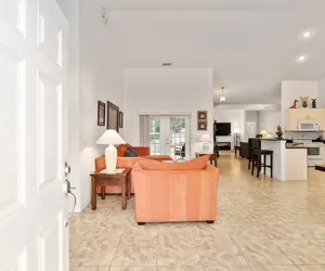 With plenty of room for everyone, this beautiful home offers all the luxury touches your family needs. Enjoy cozy evenings in the welcoming living area watching a movie on the large TV, or step outside with a warm cup of coffee or a glass of wine and unwind while taking in the peaceful views of the pool deck and garden.