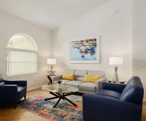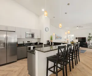 Our stunning villa sits in a brand-new, peaceful neighborhood and offers plenty of space for the whole family to relax and enjoy. Settle into the cozy living area for movie nights on the smart TV, or step out onto the pool deck to soak in the views and unwind as the sun sets over the horizon.