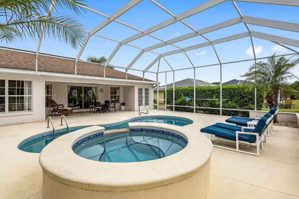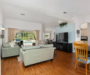 The master bedroom is located at the left side of the living room and comes with a king-sized bed and an ensuite bathroom, the first guest bedroom has a King-size bed, and the next guest bedroom has 2 twin beds and share the second bathroom. The private pool has a large covered area, with a table for 6. Around the pool there is ample room and has lounge chairs. The pool & spa can be heated with an electric heat pump, upon request (extra charge). The ideal vacation spot to enjoy the golfers, lots of birds and the tranquility of the Lakeside CC.