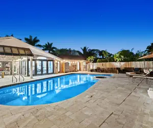 Welcome to your private resort-style retreat on 1.1 lush acres with gated access to Windmill Park’s 25+ acres of family- and pet-friendly fun. Enjoy a heated pool, indoor/outdoor Jacuzzis, tiki hut, fire pit, and evening ambiance with lights and music. Inside, relax on leather couches by the fireplace. On-site hosts live in a separate guest house and ensure the property stays clean, safe, and ready for your perfect getaway.