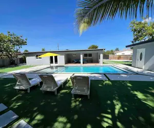 Welcome to the newly remodeled Grand Villa Miami B, a modern paradise with plush furnishings and an inviting heated pool. Nestled in the charming Sunset neighborhood, this single-level home promises comfort and convenience. Enjoy an open-concept kitchen, smart TVs, and luxurious amenities. Relax on the balcony, challenge friends to ping-pong, or bask in the shared garden. Just steps from shopping, dining, and transit, this villa is your serene retreat amidst Miami's vibrant energy.