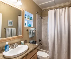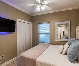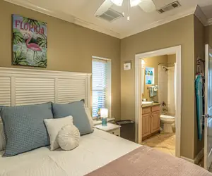Experience an unforgettable stay in 'The Villages of Blue Mountain Beach', a lovely three-story coastal hideaway. Right across from this splendid retreat lies the community's pool, state-of-the-art gym, stimulating shuffleboard, expansive putting green, and inviting bocce ball court, offering amusement around every corner.