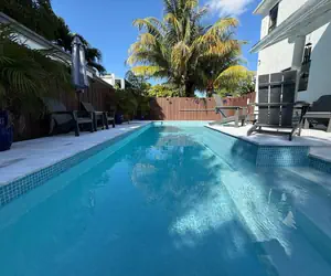 Bring the whole group and relax in this fully renovated Miami duplex featuring a private heated pool, modern interiors, and space to comfortably sleep up to 10 guests.