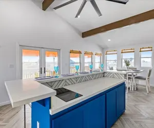 Three beach units, one booking. You get the whole triplex on Bolivar/Crystal Beach: 6BR/3BA for up to 20. Each unit has its own kitchen, living room, and Wi-Fi (~25 Mbps). Beds: queen + bunk in every unit, plus an extra bunk in one. A short walk to the sand, and near the Port Bolivar ferry to Galveston.