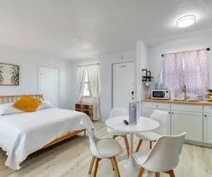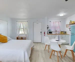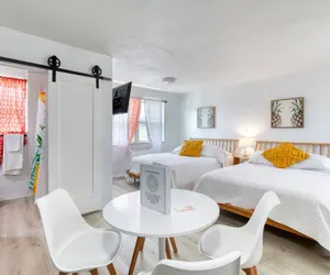 You’ll love the stylish decor of this charming place to stay. You will be close to everything at The Pineapple Shores Motel. The unit was recently fully renovated and includes an adorable kitchenette, 2 queen beds and a small futon that could sleep a child. Motel is located in Daytona Shores across from the beach and comes fully stocked. Enjoy quintessential Florida at this retro inn that is a throw back to the 50's when Daytona Beach hit the scene. Non-aggressive dogs allowed with pet fee.