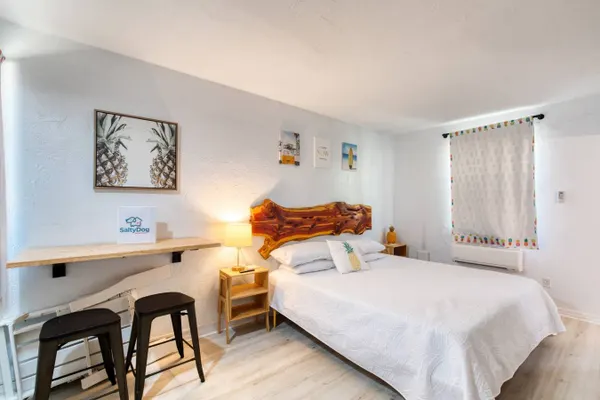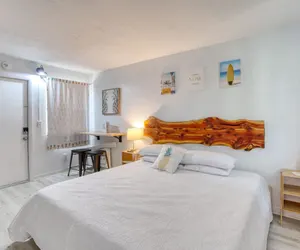 You’ll love the stylish decor of this charming place to stay. You will be close to everything at The Pineapple Shores Motel. The unit was recently fully renovated and includes an adorable kitchenette and king bed. Motel is located in Daytona Shores across from the beach and comes fully stocked. Enjoy quintessential Florida at this retro inn that is a throw back to the 50's when Daytona Beach hit the scene. Non-aggressive dogs allowed with pet fee.
