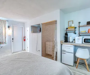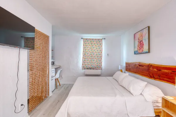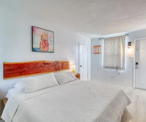 You’ll love the stylish decor of this charming place to stay. You will be close to everything at The Pineapple Shores Motel. The unit was recently fully renovated and includes an adorable kitchenette and king bed. Motel is located in Daytona Shores across from the beach and comes fully stocked. Enjoy quintessential Florida at this retro inn that is a throw back to the 50's when Daytona Beach hit the scene. Non-aggressive dogs allowed with pet fee.
