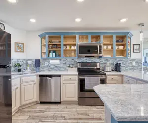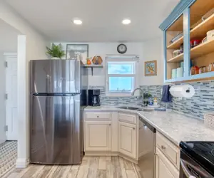 Cook breakfast before a beach day or enjoy dinner at home with a kitchen stocked with full-size appliances, cookware, dishes, and everything you need for an easy stay.