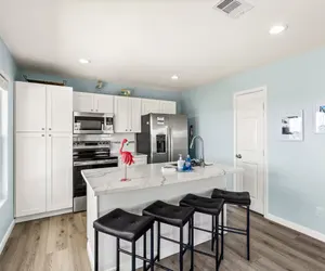 Inside, the house is made for real living, not posing. Four bedrooms and two baths give everyone space to breathe, and the layout is built for a group that actually wants to enjoy each other without tripping over one another. There’s a king bed for the people who like to sleep like they mean it, a queen bed for the early risers, and three bunks for the kids, the cousins, or the friend who swears they “don’t mind.” Altogether, the place comfortably sleeps up to 11.