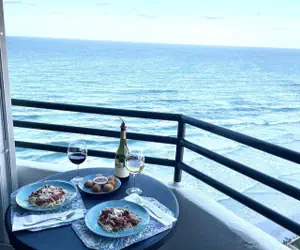 Wake up on the 12th floor with endless Atlantic views right outside your private balcony 🌅 Sip coffee with sunrise skies, toast wine at sunset, and fall asleep to the sound of waves 🌊🍷