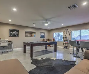 Don't miss out on this one of a kind home located only 1.8 miles from the world-famous Las Vegas Strip! This home offers a spacious layout of 4 bedrooms, family room, game room, kitchen, and backyard with a refreshing sport pool with wet deck for those hot summer days. The game room boasts a sleek, modern pool table, 60" TV, and an actual casino-played poker/blackjack table from the Flamingo Hotel! This home has been fully remodeled with a one-of-a-kind modern look and function.
