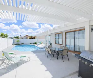 This home features 4 bedrooms and 2 bathrooms in 2000sqft of living space, with a private pool and spa, pool table, wifi, cable and more. It has been newly remodeled and furnished with modern taste.2 bedroom have one queen size bed, 4th bedroom has 1 full. The master bedroom which has one king size bed. There are tvs in all bedrooms. The kitchen is well stocked with pots, pans, and cooking utensils. This home has a private pool, as well as grassy area in the gated backyard. It is located near the Summerlin area of town, with quick access to Summerlin Parkway, the I-215 or the I-95. A great home for anyone looking for a contemporary and chic home, at a great rate!