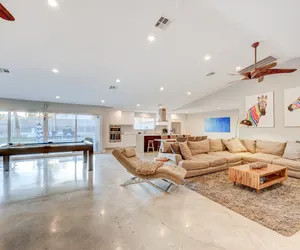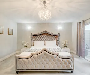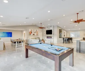 Experience the ultimate Las Vegas vacation with this luxurious and unique five-bedroom home just minutes away from the famous Strip. This spacious and beautifully designed home is perfect for large families or groups of friends, offering comfortable sleeping arrangements for your group. Step inside and be greeted by a large great room, perfect for gathering with your loved ones. As you make your way through the home, you'll find a fully stocked gourmet kitchen complete with high-end appliances, perfect for cooking up a delicious meal. The kitchen also features a large island with eat-in space, making it the perfect spot for a quick breakfast before heading out to explore the city. Entertainment is at your fingertips with the game room, featuring a sleek, modern pool table, a genuine casino-used poker/blackjack table from the iconic Flamingo Hotel, and a 65" smart TV. Take advantage of the backyard oasis, featuring a refreshing sport pool with a wet deck, perfect for cooling off on those hot summer days. You'll also find a 5 hole putting green, beach volleyball court, giant chess game, cornhole, lounge chairs and more. Each of the 5 bedrooms offers comfortable and luxurious sleeping arrangements. The two primary bedrooms each have their own en-suite bathroom and a 55" smart TV for your entertainment. Enjoy a luxurious and unforgettable Las Vegas vacation at this stunning home. Book now before it's too late!