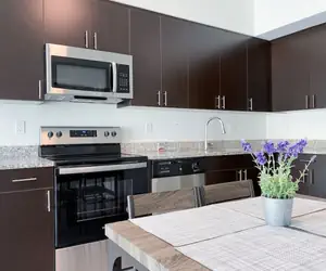 2 bedrooms with 2 full bathrooms, big kitchen, and washer & dryer in the apartment.