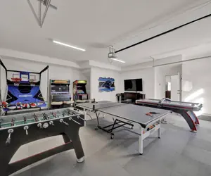 This brand-new home sleeps 12, featuring 3 bedrooms, 5 beds, 3.5 baths, a thrilling game room, high speed internet, monster 82-inch TVs, and free off-street parking.