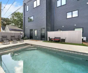 This brand-new home sleeps 10, featuring 3 bedrooms, 4 beds, 3.5 baths, a fully functional garage gym, high speed internet, monster 65-inch TVs, and free off-street parking.