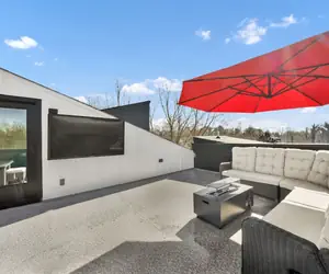 Take in the breathtaking views of the city skyline from the contemporary rooftop, while enjoying your favorite glass of wine and gazing into the warm glow of the rooftop fire pit.