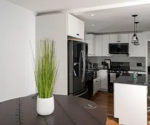 Welcome to your home for connection and comfort, a stylish and contemporary retreat just minutes from Boston. Our home features an open-concept living area with a modern kitchen, complete with quartz countertops and sleek black steel appliances. Oversized windows fill the space with natural light, creating a bright and welcoming atmosphere.