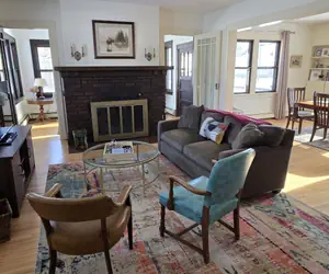 The home is in downtown Hibbing, Minnesota, close to restaurants, and about 30 miles to the Sax Zim Bog, three hours from the Minneapolis/St. Paul area, 50 miles from Duluth and 40 miles to Giants Ridge Recreation area. Travel insurance is advised with the northern MN winter weather as traveling can be easily disrupted if there is a storm anywhere In the U.S. Our 3-bedroom, 2-bath home comes equipped with the following amenities: *3 Queen Beds , *2 Full Baths (1 upper/ 1 lower level) -the lower level bath is best used as a tub as the shower rod is curved but you can also use as a shower. *Fully equipped Kitchen with updated appliances (along with pots/pans/dishes) Keurig machine, air fryer, crockpot, toaster, spices and the necessities to cook up a home-cooked meal. The washing machine is not a listed amenity and is not available to use. The dryer is ok to use. *Hardwood floors throughout main and upper levels; *Outdoor Deck along with dining table and seating and front patio with 2 chairs. *110 volt outlets in the garage for car or ebikes; *6 Smart TVs (Roku and Amazon fire tvs) with the ability to access your favorite stream apps. There are many apps already signed on to and available to watch. TVs are in each bedroom, kitchen, living room & sun room. *Included are board games, cards, a record player, and books for your use. *Detached Garage that can fit 1 larger vehicle such as a truck or 2 small vehicles and bicycles. Discover more on what to do in Hibbing Minnesota - Check out the link at https://www.saxzimboglodging.com/pages/things-to-do-in-Hibbing. If you book the home on our direct booking website we will follow the refund and cancellation process as advertised on the site you are booking on. If you do need to cancel, the refund will be issued following the advertised policy, minus any credit card fees that Stripe charges, if applicable. You will sign a short term Rental Agreement that outlines rules, etc. upon booking and complete the online check in form before arrival. Located 8 blocks to the amazingly talented Bob Dylan's childhood home, and 1 block to the Hibbing High School. There is a public art tribute that commemorates Dylan’s Nobel Prize in Literature at the high school. Some other notable areas to visit in the area are the Memorial Building for Hockey and Curling, The Greyhound Museum, Mesabi Trail, The Hibbing Speedway, Discovery Center, and the Hull Rust Mine View.