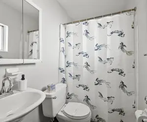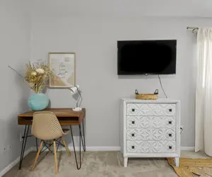 Enjoy this beautiful and cozy studio, newly renovated and professionally designed for the discerning traveler. The property has everything you may need to feel like home. A large kitchenette with full dish set and pots and pans. There is also a desk/ workstation for office work and a Smart TV that can double as a computer monitor! Full bathroom with tub/shower.