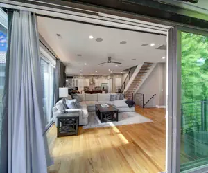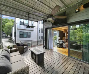Escape to your next urban oasis in Charlotte, where a rooftop sanctuary awaits with stunning city skyline views, a private hot tub, fire pit, outdoor furniture and bar area. Enjoy arcade games and multiple HDTVs in the garage sports bar, or unwind in the spacious open concept living area with easy access to the private patio. With cozy rooms with a king bed in the master, and a prime location near top attractions, it's the ultimate city retreat