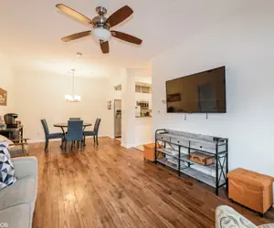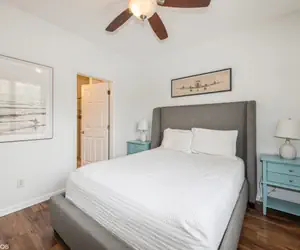 Step into a sea of tranquility and luxury in our coastal chic 2-bedroom condo. Designed with an acute sense of style and comfort, our loft is flooded with natural sunlight and features modern facilities, sleeping six guests comfortably. Lounge in our plush and cozy living area, a canvas of comfort that hosts a sleeper sofa and ample space for relaxation and cheerful gatherings.