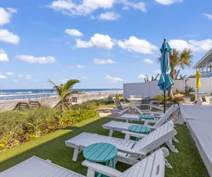 Have fun with the whole family at this stylish beach house located directly on the Atlantic Ocean. Enjoy a private beach access walkway and a gorgeous patio to watch kids and dolphins play. Spend beach nights relaxing in the hot tub. This updated home has four bedrooms and four full bathrooms (plus a separate building with a game room that has two small futons). Oversized living room with expansive sliders give breathtaking views of the ocean. Fully stocked kitchen for all your stay-at-home meals. Detached building with game room featuring air hockey, arcade, darts and more. Parking for 4 cars. Excellent part of town. Close to everything but feels like your own private retreat. Pets are welcome with pre-approval and Pet Fee paid prior to arrival. Hour to Disney.