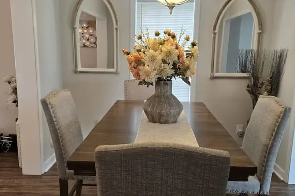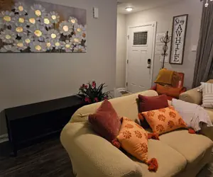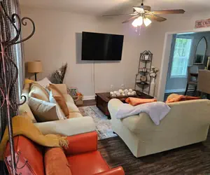 Home away from home living experience with full kitchen, W&D, 4 TVs, Couch, love seat, recliner, hair dryers, and dining room table.