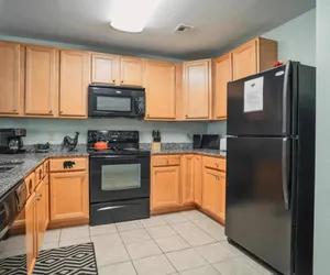 The fully stocked kitchen encompasses a refrigerator/freezer, dishwasher, microwave, and stove/oven. We supply dishes, glassware, pot and pan sets, a toaster, a blender, and a coffee maker. For specialized items such as a wok, rice steamer, or crockpot, we recommend bringing your own, as these are not provided. Enjoy complimentary amenities, including free Wi-Fi, cable TV in the rooms, and local phone service. Sheets and towel sets are provided for your stay, though they cannot be changed out. A full washer and dryer are also available in this unit. While we provide a single-use box of detergent, you may wish to bring extra if you plan to do laundry. An iron and ironing board are included. This resort is pet-free, smoke-free, and strictly prohibits trailers.