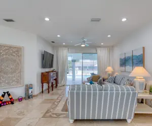 This newly remodeled riverfront home is waiting for you! Featuring a boat dock, enclosed pool w/soaking tub, game room w/ billiard table and a TESLA charging station! You'll be sure to enjoy the modern furnishings, newly remodeled bathrooms, spacious living and outdoor entertainment spaces and located within a 10-minute drive to the beach. The pool can be heated for your stay as well with an additional cost of $100/day (hot tub has no heat, please arrange with management to get charges taken care of and set up the pool heat. Have a furry companion? Send us an inquiry and we'll give you accurate details. The possibilities are endless! LBTR#36880