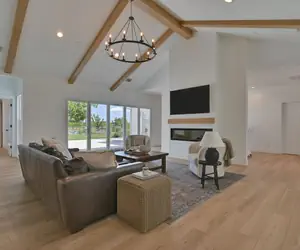 This modern farmhouse is a stunning blend of rustic charm and contemporary luxury, offering guests the best of both worlds. Inside, the home is newly built with sleek, modern finishes and luxury amenities. The open-concept living space is highlighted by natural light and hardwood floors and boasts a comfortable seating area, a fireplace, and a dining area. The gourmet kitchen is fully equipped with high-end appliances, granite countertops, a center island, and ample cabinetry, perfect for hosting dinner parties or preparing meals for the family.
