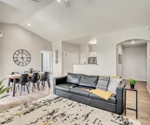 Kick back and relax in the tastefully appointed living room, featuring plush seating, a 55" 4K Ultra HD TV, and the convenience of essentials like an in-unit washer and dryer for long stays. Each bedroom promises restful sleep with memory foam mattresses and features a 43" 4K Ultra HD TV, a walk-in closet, and an en-suite bathroom.