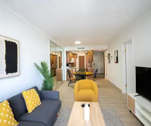 Apartment equipped with two full baths, two spacious bedrooms and plenty of storage space. Fully equipped kitchen, wifi, smart tv's and shared washer&dryer outside the apartment.