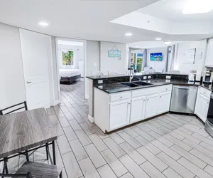 Resort-Style Amenities: Dive into relaxation at our resort, which boasts a large pool, a hot tub, a lazy river, and a splash area for kids. Enjoy the tranquility of our adults-only hot tub and fire pit in the landscaped area—perfect for sunbathing or unwinding after a day of activities. A fully equipped fitness center is available on-site to help you stay active during your stay.