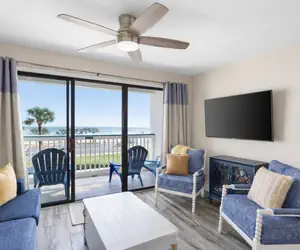 Step into your private slice of paradise on the prestigious third floor of Casa Del Mar Resort! This thoughtfully remodeled beachfront haven captivates with unobstructed Gulf views that stretch endlessly from your private balcony. We've transformed this intimate space into a coastal retreat where every detail speaks of comfort and style. From the fully equipped gourmet kitchen to the triple Smart TV setup (yes, even in the bunk area!), this sanctuary was crafted for the perfect beach getaway. Join our family of delighted guests who treasure our attention to detail and genuine hospitality! Perfect for couples, families, or small groups seeking their own beachfront escape.